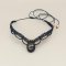 Voici un ras-du-cou effet "dentelle" tissé avec du fil polyester bleu d'orage en 0.75 mm. J'ai mis en valeur une belle labradorite ovale d'environ 1.5 cm de large sur 2.3 cm de long. J'ai agrémenté le tissage avec des perles en laiton.