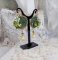Le tout est suspendu sur des clous d’oreilles trio de fleurs laiton avec une chaîne strass appliqué sur le poussoir à l’arrière de la boucle et que l’on peut enlever.